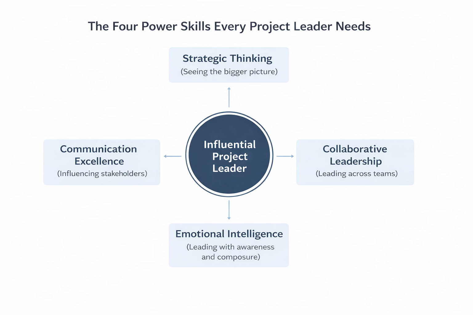 The Power Skills Leadership Accelerator focuses on four essential capabilities that help project professionals move beyond execution and lead projects with greater influence.